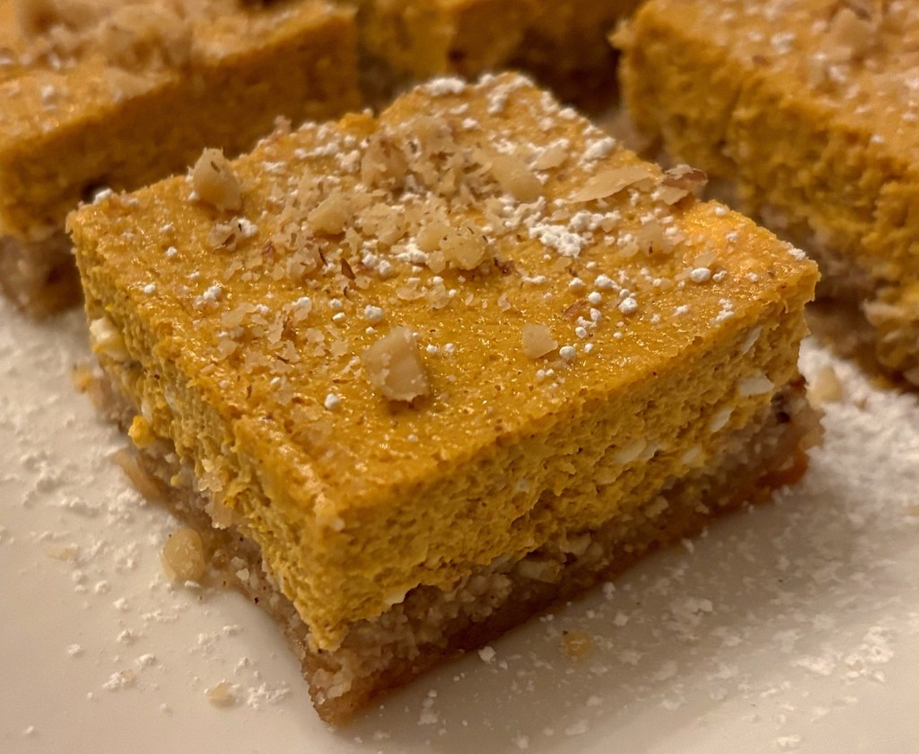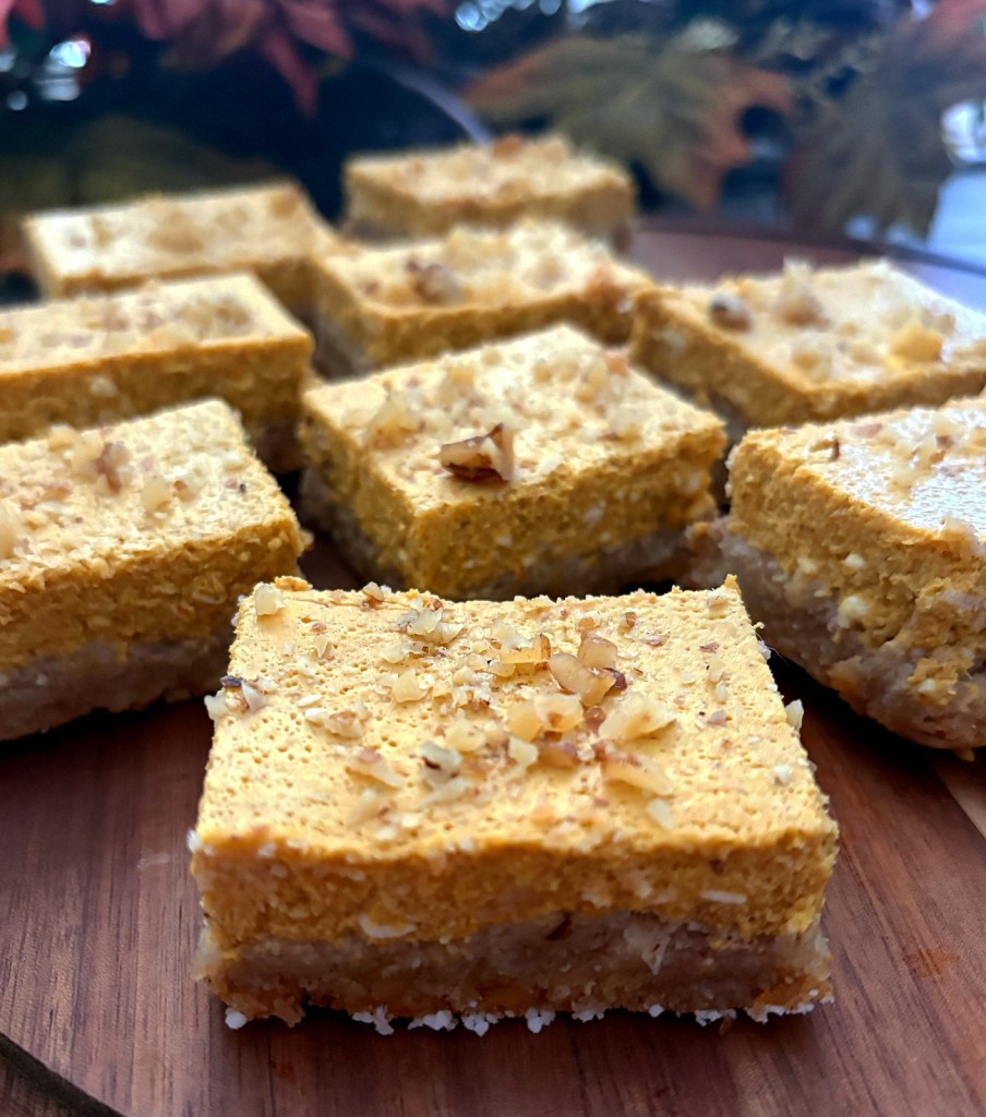 Looking for the perfect gluten-free fall dessert? This is it! These pumpkin cheesecake bars are so cozy, creamy and totally gluten and refined sugar free. This is a great way to use up that jar of pumpkin puree we all have in the pantry this time of year. This recipe will make you forget all about those store-bought pumpkin pies ☺️
